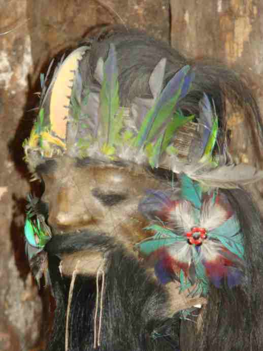Vimos também as mini cabeças equatorianas. O índios equatorianos são muito bravos. Nem os incas, nem os espanhois conseguiram escraviza-los. Eles, antigamente, cortavam a cabeça dos inimigos, costuravam a boca, cozinhavam esta cabeça com pedras em braza até ela ficar do tamanho de um punho (como esta da foto, que é de verdade). Depois o matador pendurava a cabeça no pescoço e se exibia para a tribo em uma noite de comemoração. Siniiiiissstro!