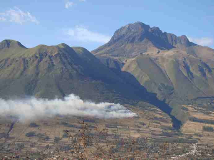 Fomos para Rio Bamba. A idéia era subir o nevado vulcão Chimborazo e descer de bicicleta, mas ele estava dentro de nuvens muito densas. Acho que estava nevando um bocado lá em cima e não justificava subir e não enxergar nada.
