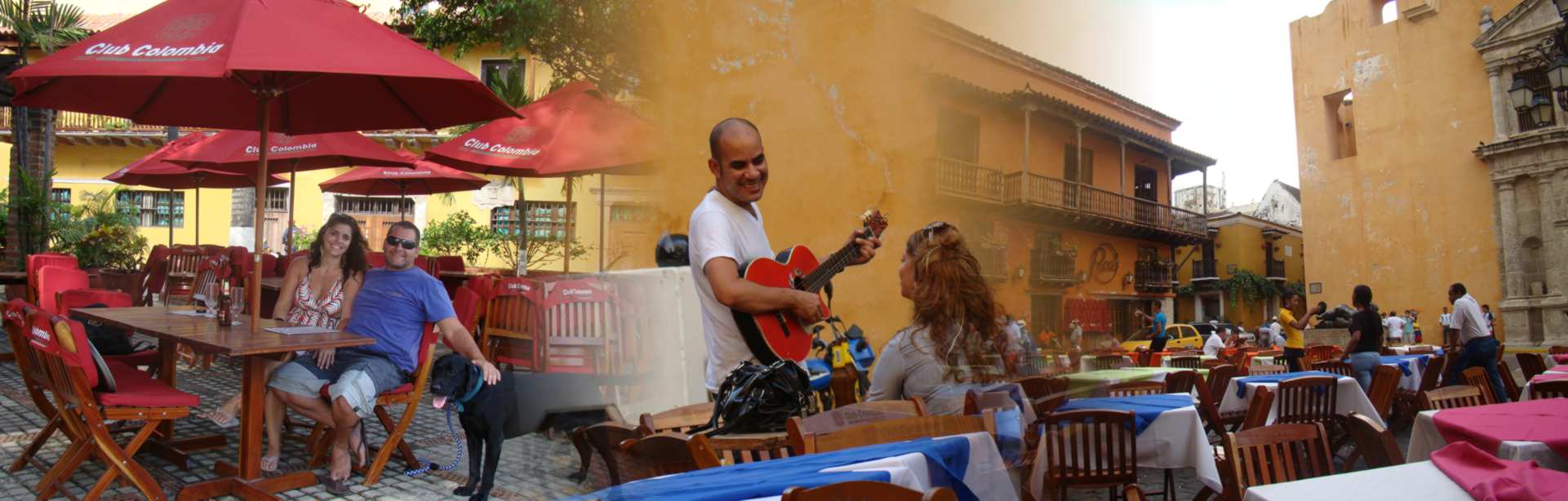 A cidade tem umas pracinhas com mesinhas espalhadas onde músicos tocam musicas típicas colombianas.