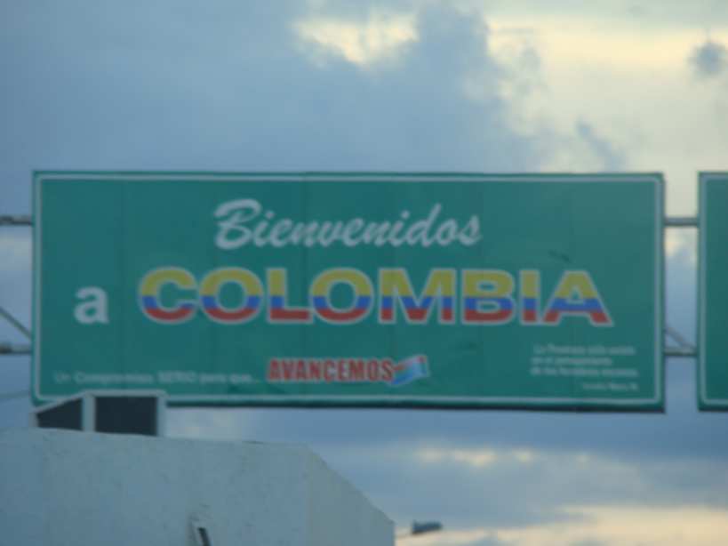 Chegamos na Colômbia e o trâmite para entrar foi bem tranqüilo. Não tinha ninguém cruzando a fronteira nesse dia. Só a gente mesmo. 3 malucos.