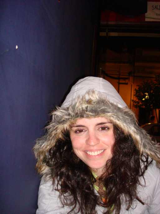 De casaco novo.