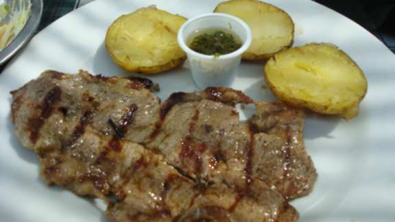 Aqui é possível comer bem e barato. Após a descoberta do problema do Gustavo, e com isso uma série de restrições quanto à alimentação dele, procuramos lugares mais saudáveis para nos alimentarmos, pois ficamos hospedados em hotéis desde que voltamos para Colômbia e não tínhamos lugar para fazer nossa própria comida. É como diz aquele ditado “Quem procura, acha” e nós achamos um restaurante do jeito que precisávamos, na Av. San Martin, em Bocagrande. O proprietário deste restaurante é um argentino que também viajou de moto por toda a América do Sul. Ali nos alimentamos por alguns dias e optamos por refeições mais leves. Um dos pratos que comemos foi o “Churrasquito”. Esse prato nos custou $ 7.500 pesos colombianos, cerca de R$ 5,00. Esse “Churrasquito” é feito com carne na chapa, batatinhas cozidas e um molho muito gostoso feito de azeite e ervas...