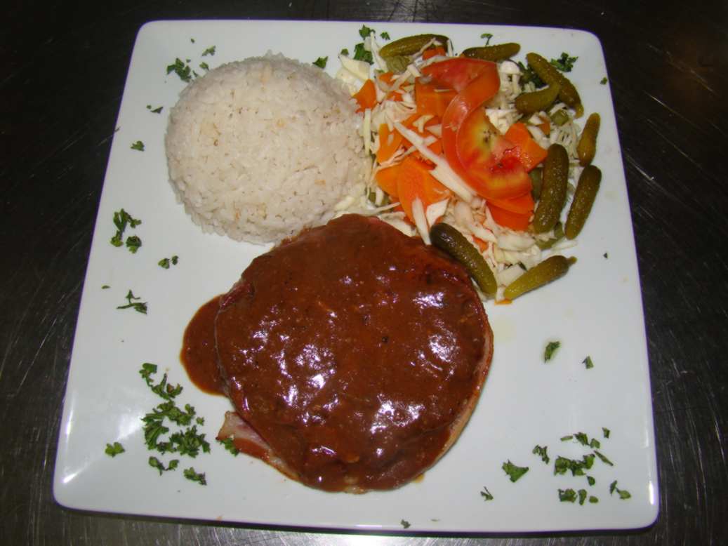 Essas comidinhas servem para mostrar, a quem for fazer uma viagem como a nossa, que é possível comer bem e barato quando necessário, mas é preciso ter um pouco de paciência e procurar um pouquinho. Em nossa última semana em Cartagena, voltamos ao maravilhoso Hotel Casa de Las Palmas, onde fomos recebidos como hóspedes Vips. Fizemos um trabalho muito bacana para eles de divulgação do seu restaurante, também com o mesmo nome Casa de Las Palmas. Um vídeo mostrando todo o espaço do restaurante e também a preparação de alguns pratos. Quando conversamos sobre o vídeo, a única coisa que pedi foi para que os pratos preparados durante a filmagem fossem pratos típicos colombianos para que pudéssemos mostrar para vocês. E são essas maravilhas que mostramos agora. O prato feito com carne chama-se “Rés A La Pimienta”... uma suculenta posta de medalhão, salada e arroz branco.