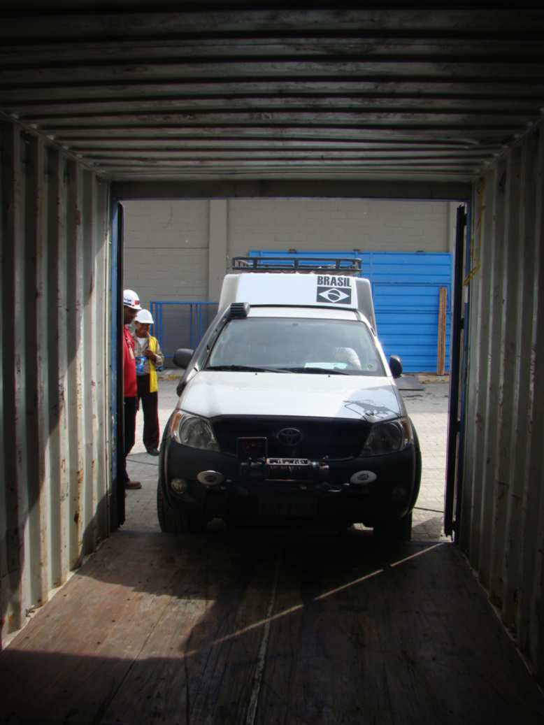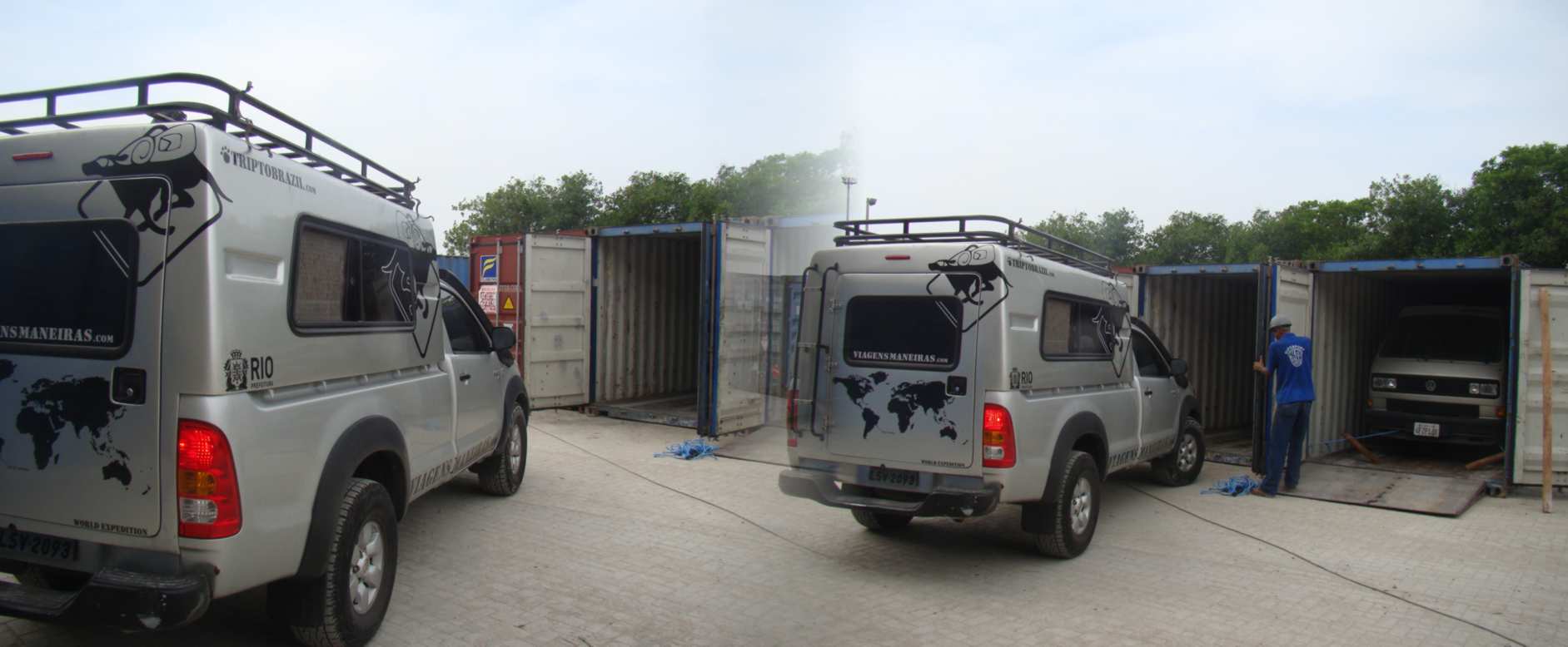Era a hora da verdade. Queria saber se o carro cabia certinho no container. Será que meus cálculos deram certo?