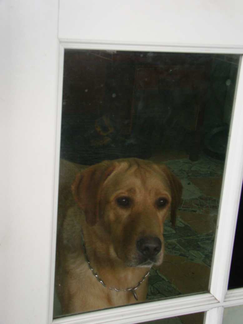 Na hora de irmos embora, cruzamos com o cachorro Max. Com um olhar meio distante e depressivo ele estava dentro do escritório esperando sua próxima missão.