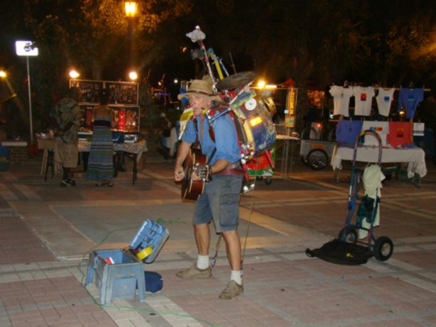 Depois que o sol mergulha no mar, os artista de rua dão seus shows pirotécnicos...