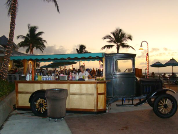 Outra atração importante da cidade é a “Key Lime Pie”, ou torta de limão de Key (Key são todas as ilhas do sul da Flórida). Nós não comemos, pois doces não estão entrando no nosso cardápio, mas quem vier e puder comer doce, não perca! Dizem que é deliciosa e tem lojas especializadas que vendem somente essas tortas em formatos variados! A bebida oficial de Key West é a “Margarita”, e o lema oficial é “tudo é perimitido”. É vir e se divertir! No dia em que chegamos a Key West ficamos num camping super bacana e lá comemoramos a primeira estrada do farofamóvel nos EUA!