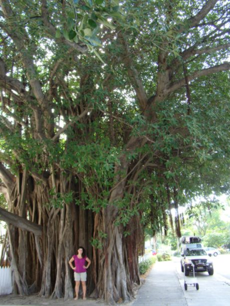 A Ana se protegeu do sol embaixo de uma árvore absurdamente enorme.