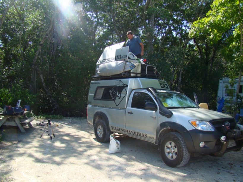 Os americanos acampam com uma estrutura animal. 99% deles acampam em motorhomes, e 95% destes são de luxo. Dentro dessas casas sobre rodas tem tudo: 4 ar condicionados, desktops com monitores de 40 polegadas e Tvs de plasma gigantes.
