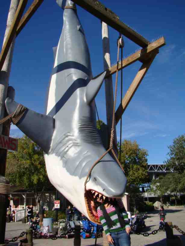 E o Jaws do tubarão é a maior fila para ver um tubarão robô que é “muito favela”