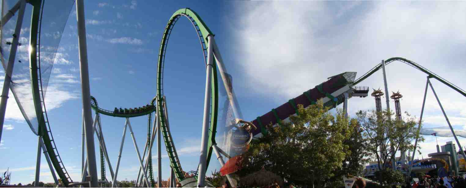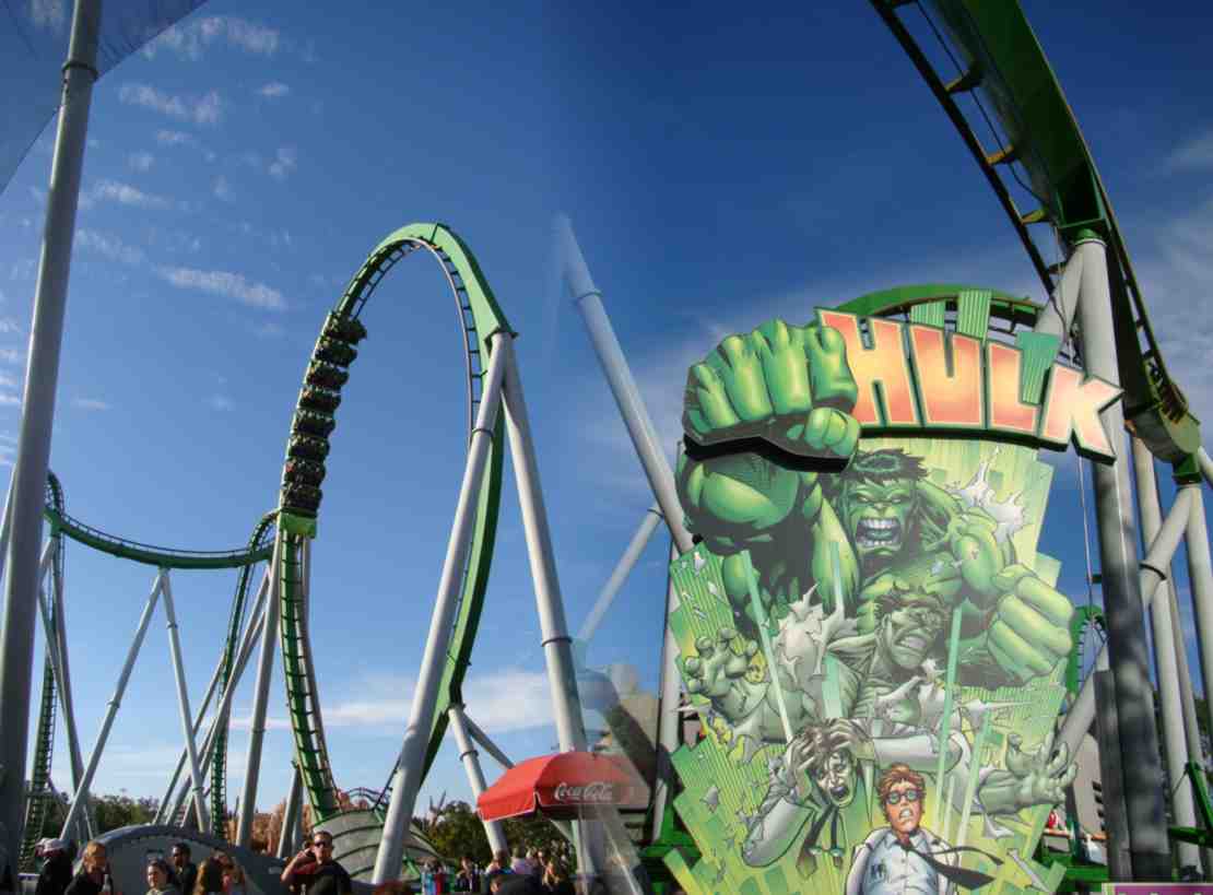 E lá está a montanha russa mais irada do mundo. A do Hulk.