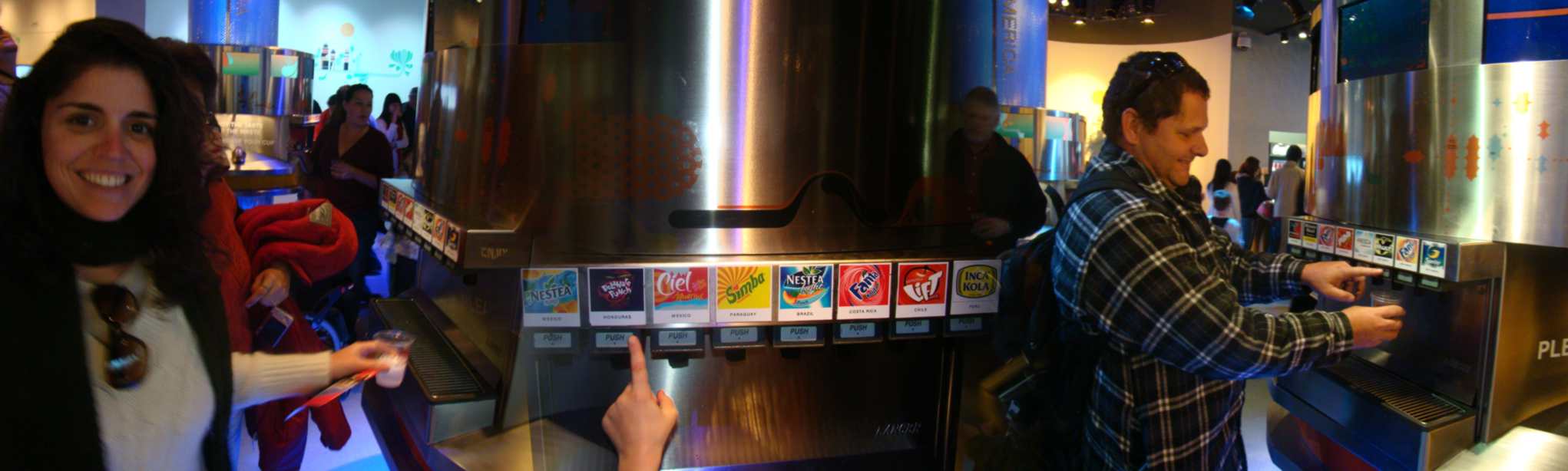Fomos na Coca e experimentamos mais de 45 tipos de refrigerantes do mundo todo. Uns eram ótimos, mas a maioria parecia remédio.