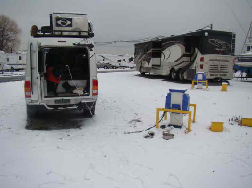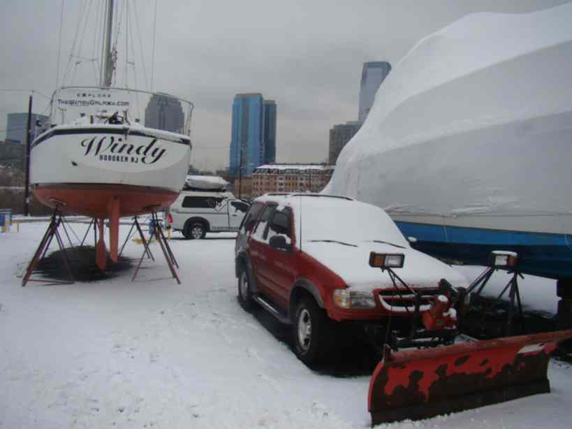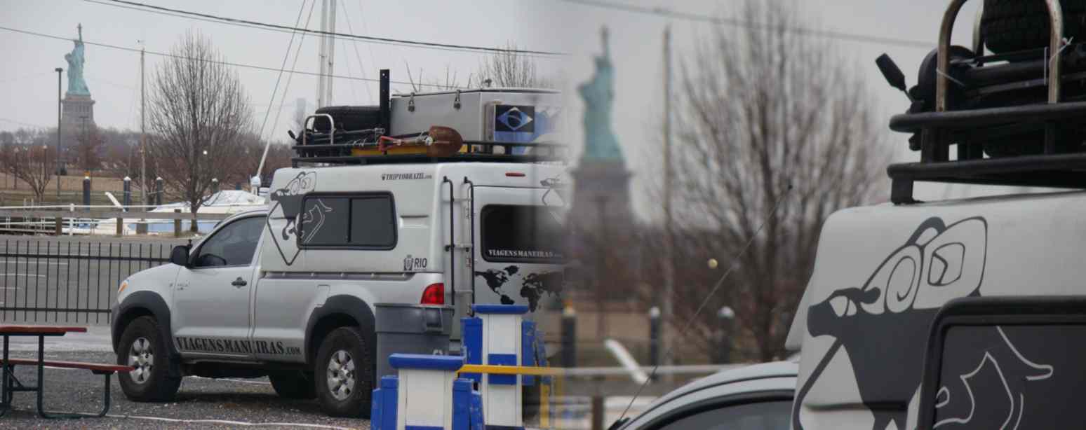 No dia seguinte, de manhã, nas bordas do Rio Hudson e de frente para NY, o Farofamóvel acordou debaixo de neve.