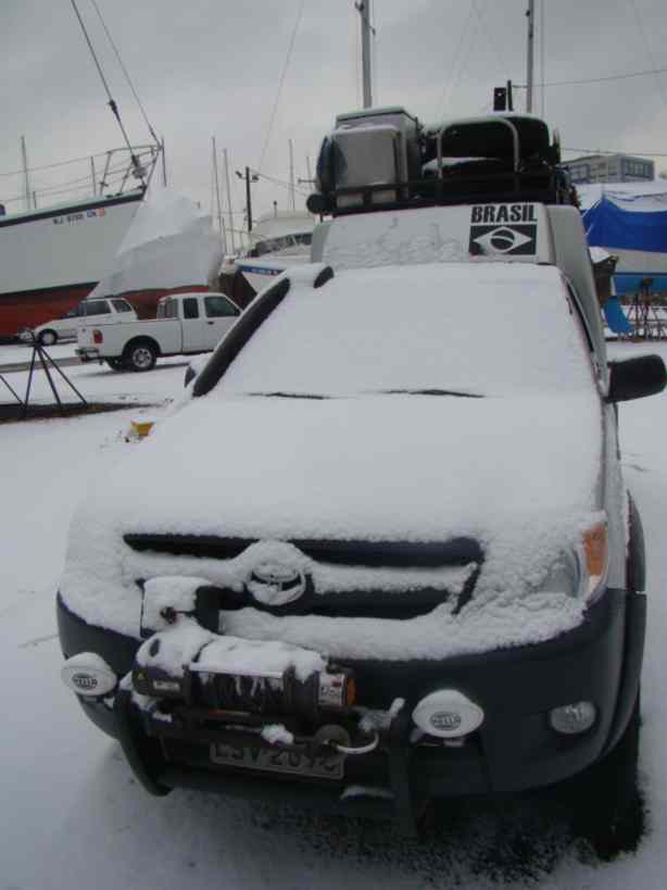 O carro balançou a beça. A estrutura do Farofamóvel começou a estalar com o frio. Os cadeados travaram e as chaves quebraram dentro das fechaduras. Estalactites de 1 metro de altura e um palmo de largura se formaram em volta do carro. Os toldos dos barcos rasgaram. Perrengue total.