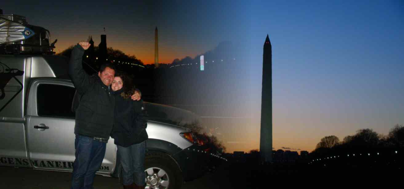 A primeira parada foi no obelisco em homenagem a George Washington.