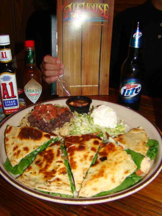 No ultimo diário de 2009 mostramos uma lanchonete fast food de comida mexicana, o Taco Bell. A comida mexicana tem presença muito forte em todos os EUA, e praticamente em todos os restaurantes e bares há petiscos e comidinhas desta nacionalidade. E a gente não perde a oportunidade de deliciarmos essas maravilhas. Num bar super bacana, ainda em Orlando, chamado “Ale House”, pedimos uns snacks deliciosos que vieram com quesadilla, feijão e salsa apimentada... uma delicia!