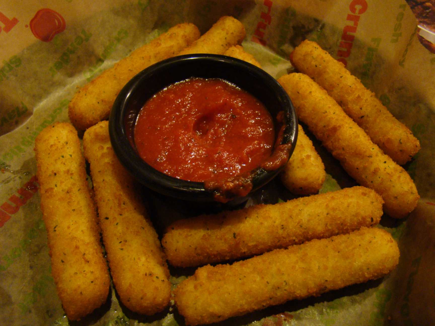 Para começar pedimos uns palitinhos de queijo com molho apimentado...