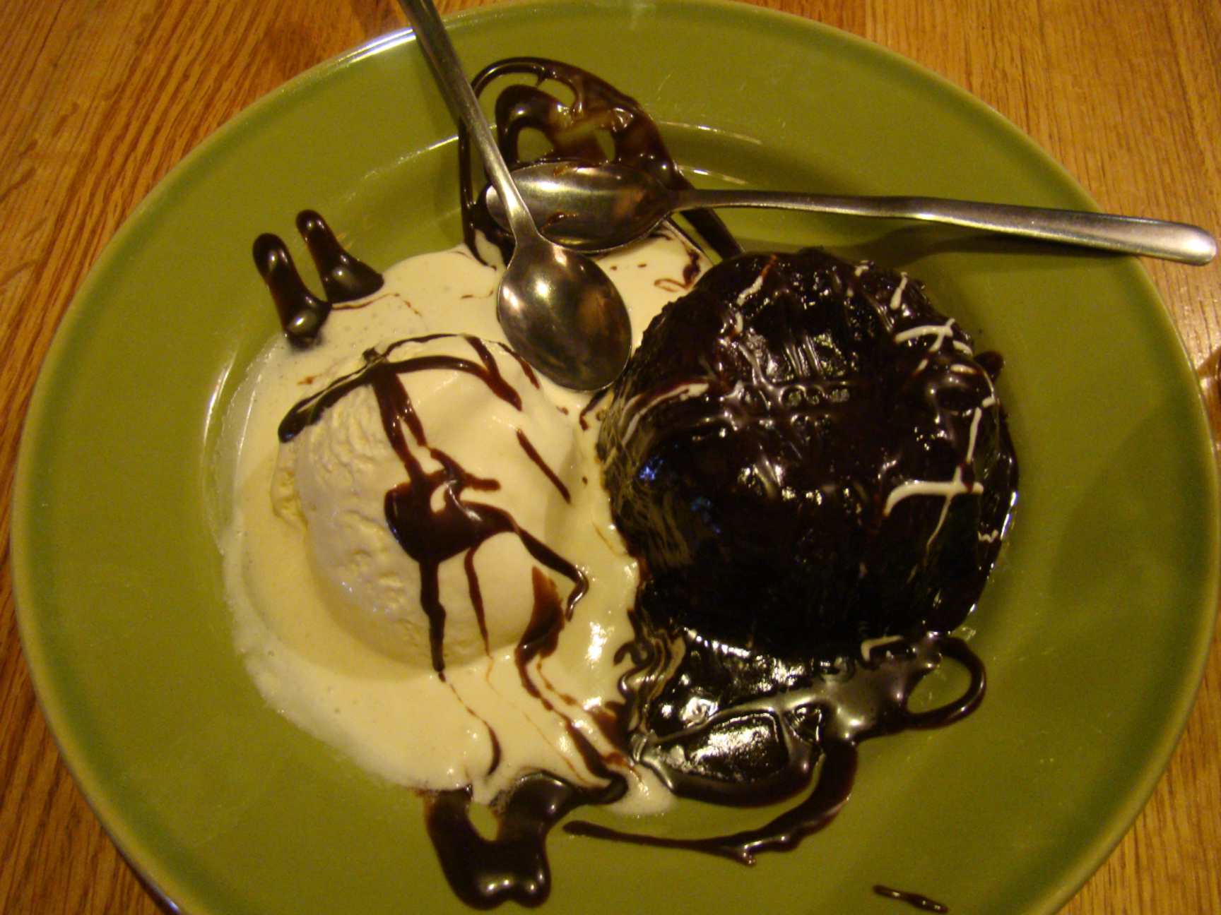 Uma coisa que raramente fazemos nos restaurantes que vamos, mesmo quando estamos no Brasil, é pedir sobremesa, mas desta vez não pudemos resistir a um brownie de chocolate com sorvete de creme que passava pra lá e pra cá na nossa frente toda hora... e acabamos pedindo também. Por favor, veja a foto abaixo e entenda tudo...