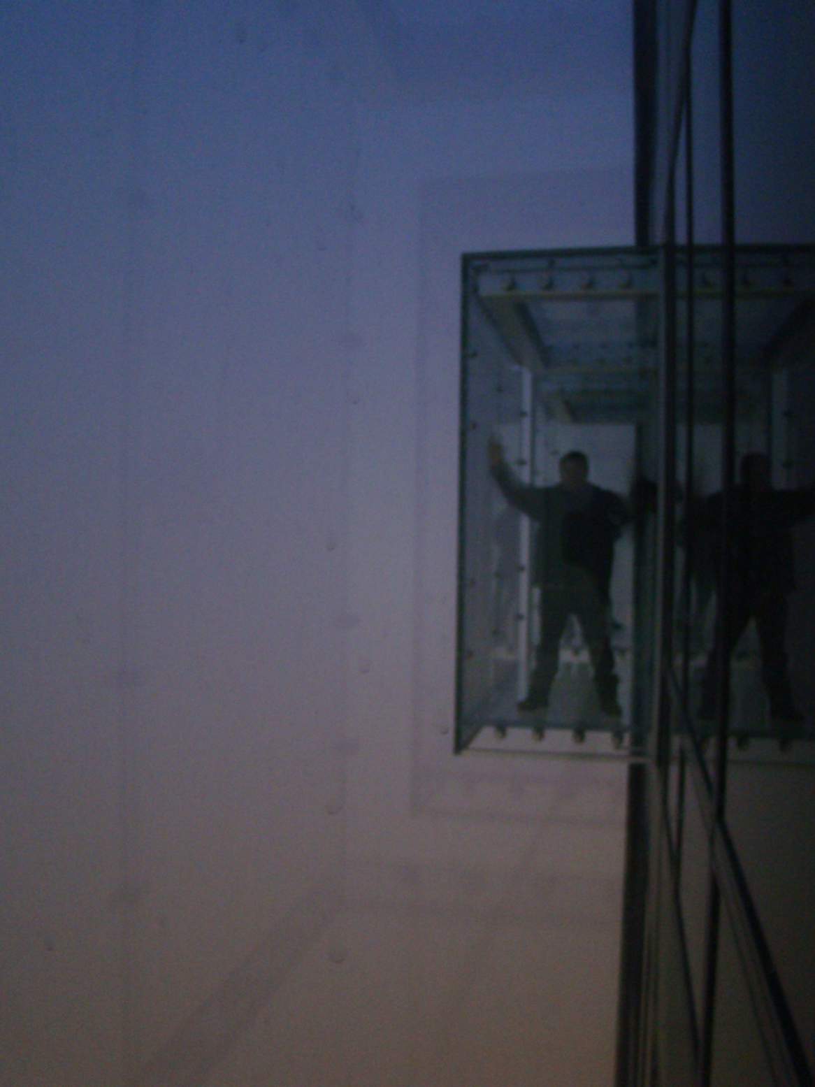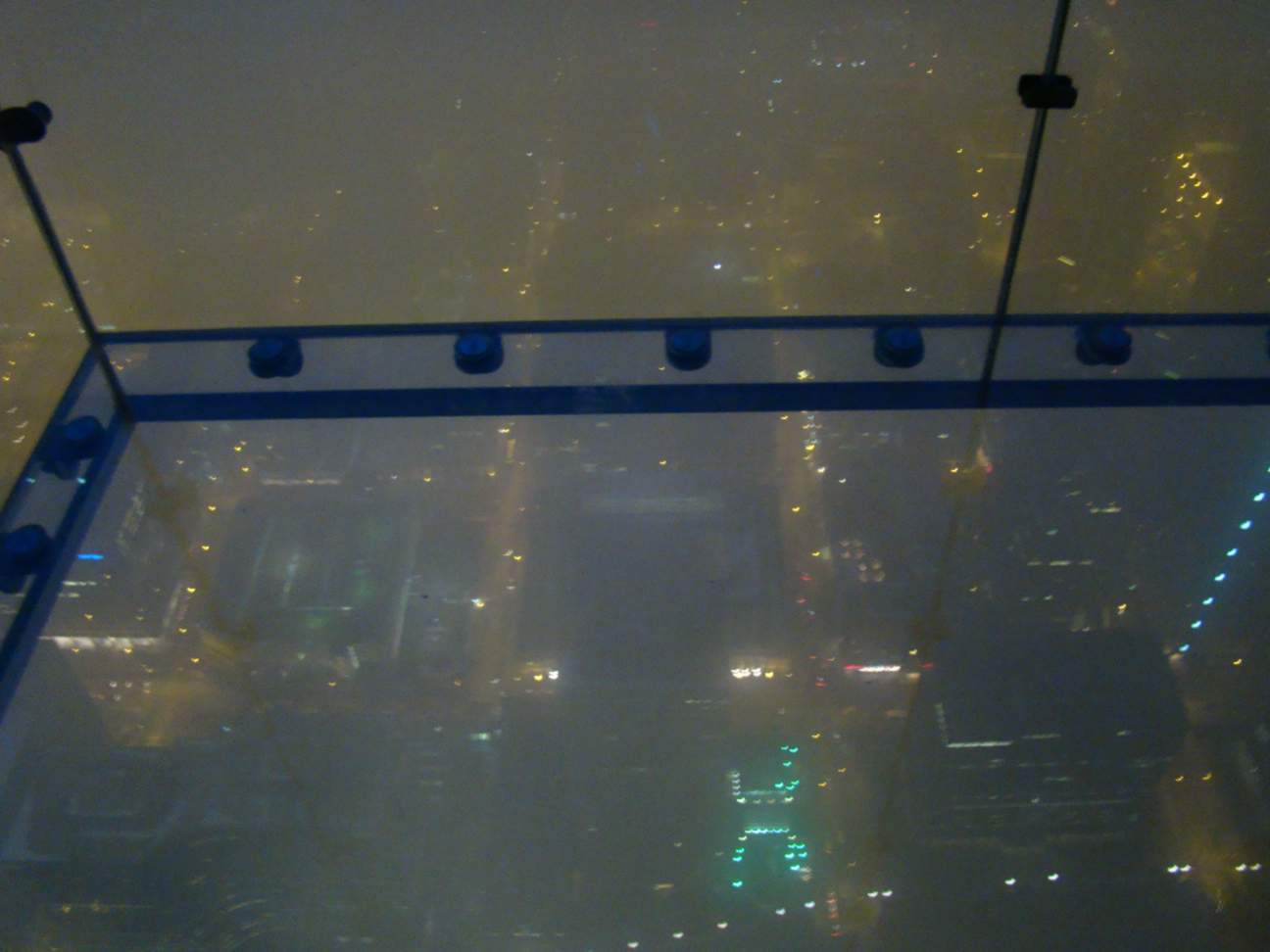 O chão é de vidro e dá para ver a rua lá embaixo. Os carros ficam pequenininhos. É  tenebroso!