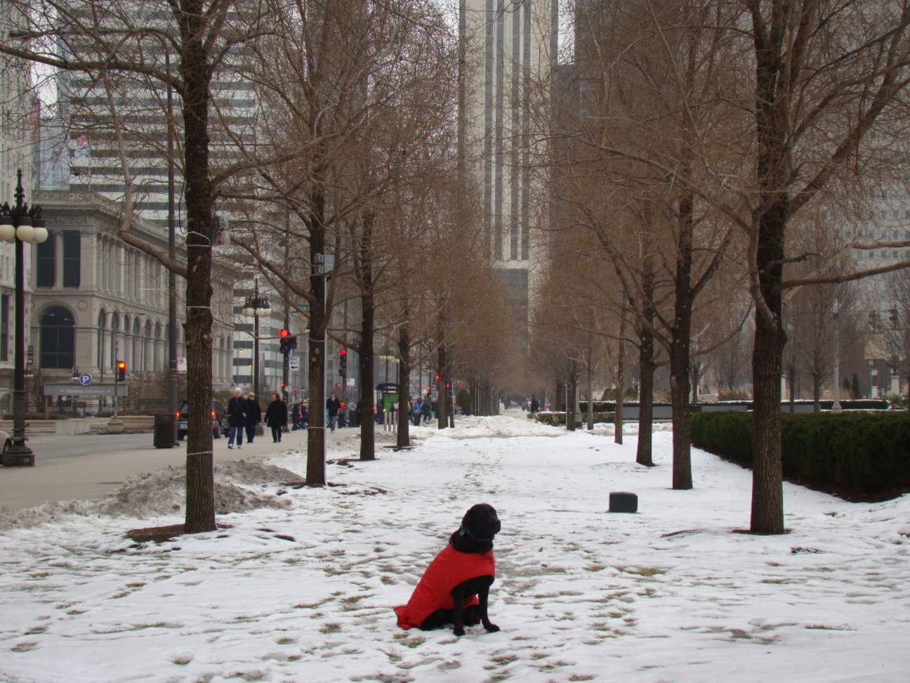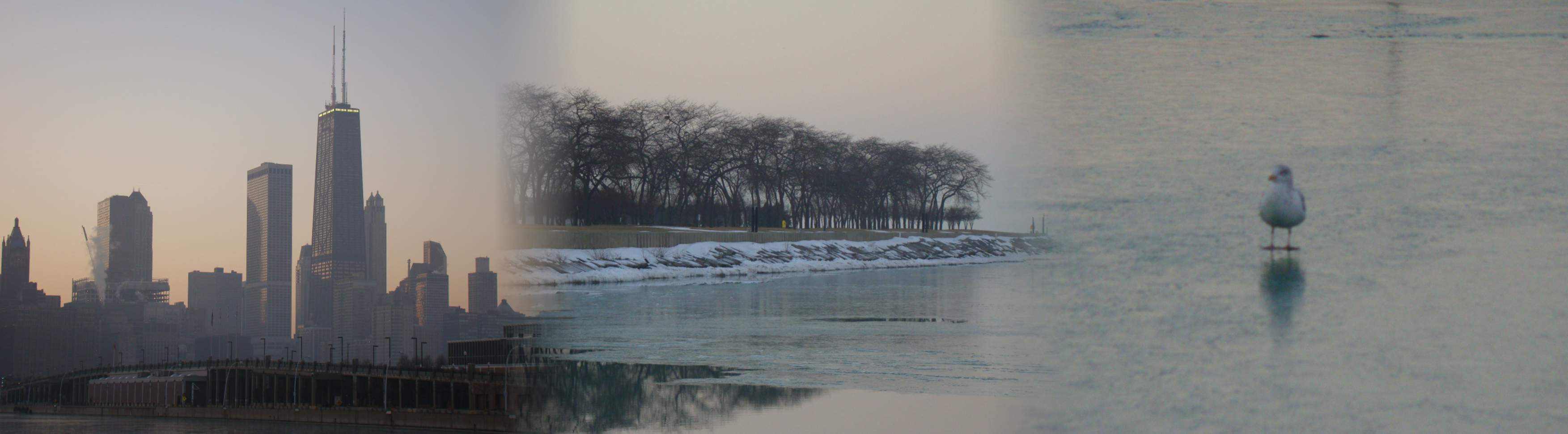 Chicago é tão frio que o lago Michigan congela no inverno e os pássaros andam na água.