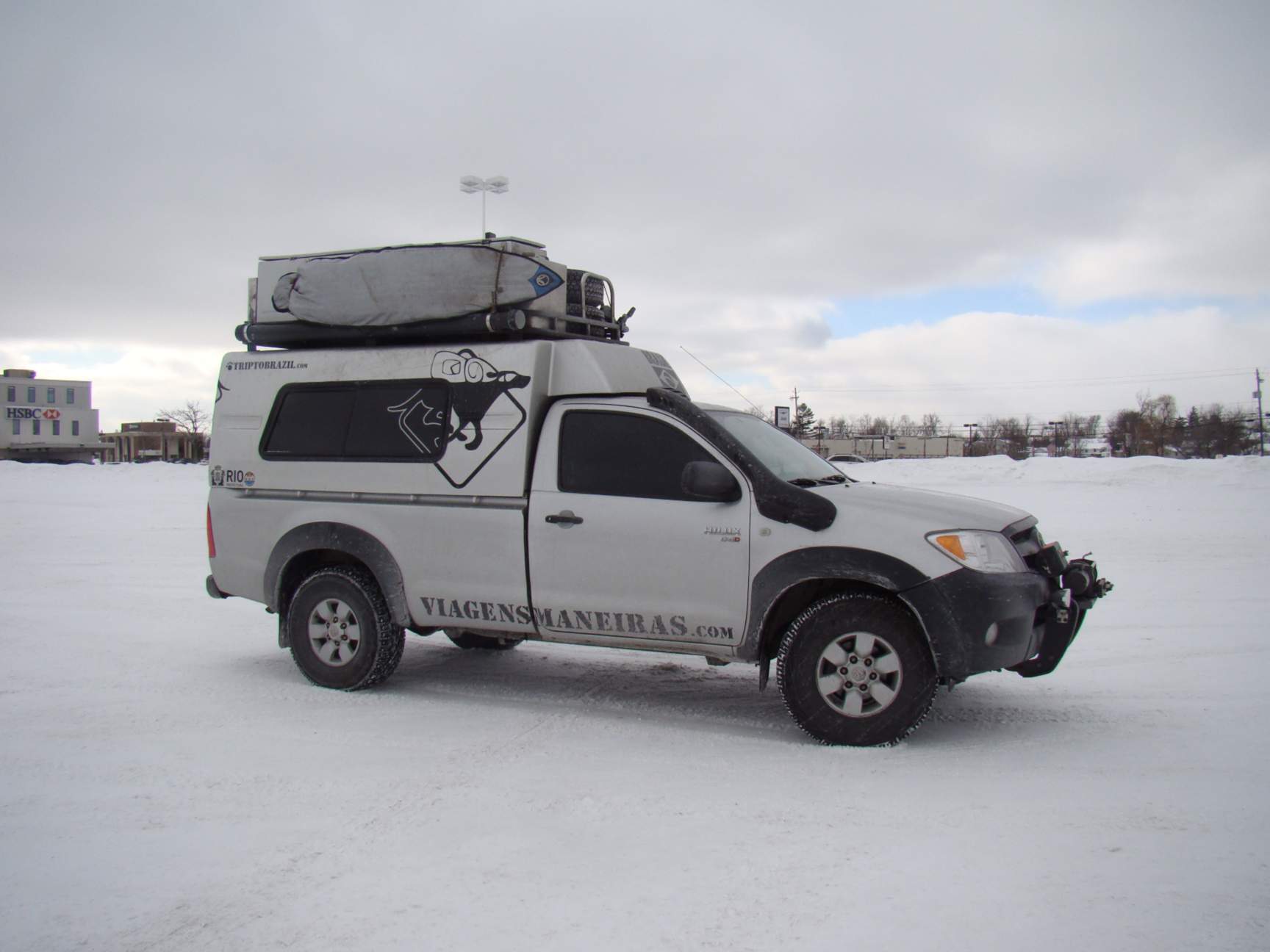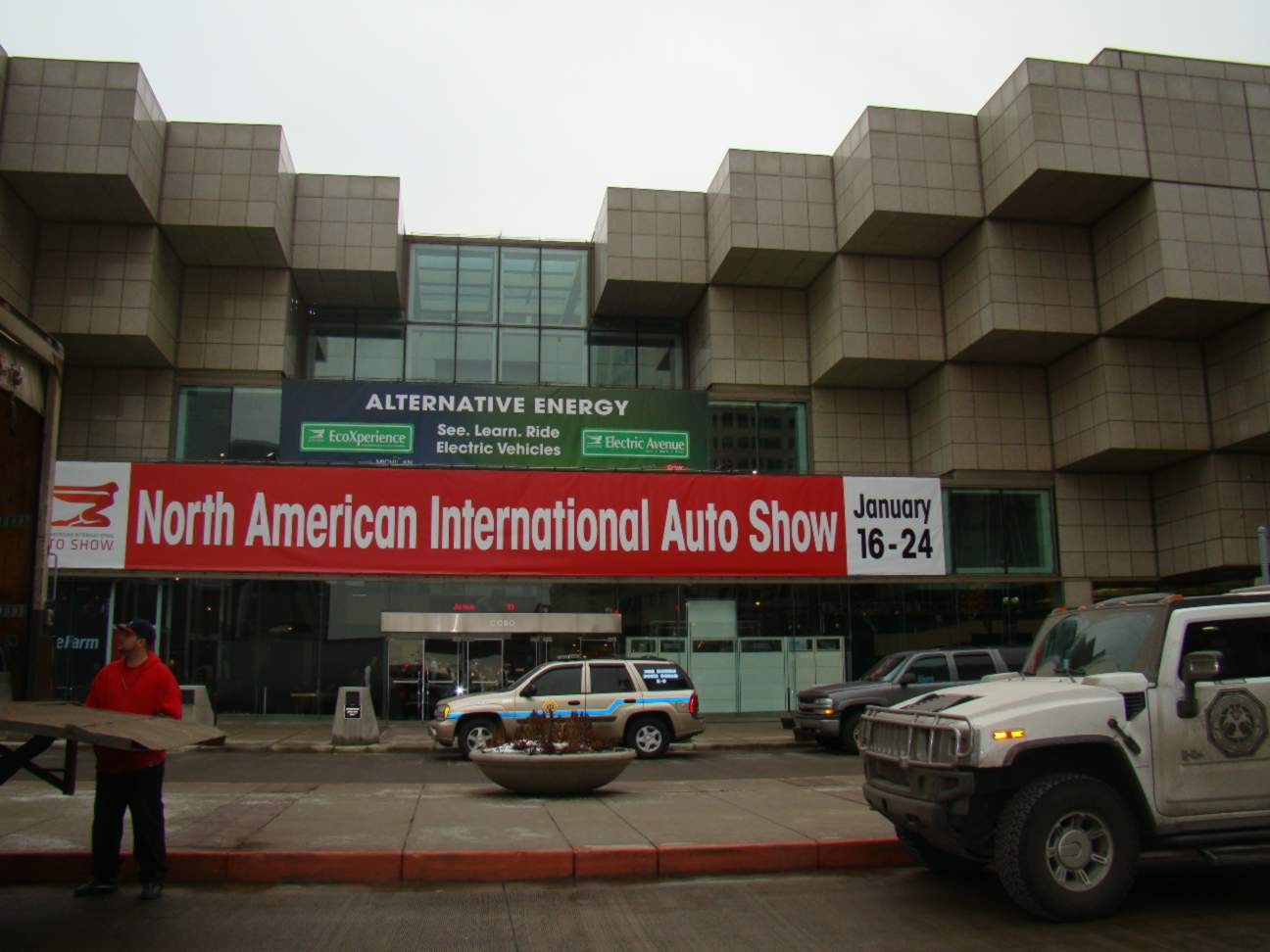 O lendário "Salão Automobilístico de Detroit" estava acontecendo durante nossa passagem pela cidade e o Farofamóvel chamou bastante atenção do pessoal que entrava na feira, pois a Hilux, modelo novo, é totalmente desconhecida na América. As estrelas do momento são os carros híbridos e elétricos.