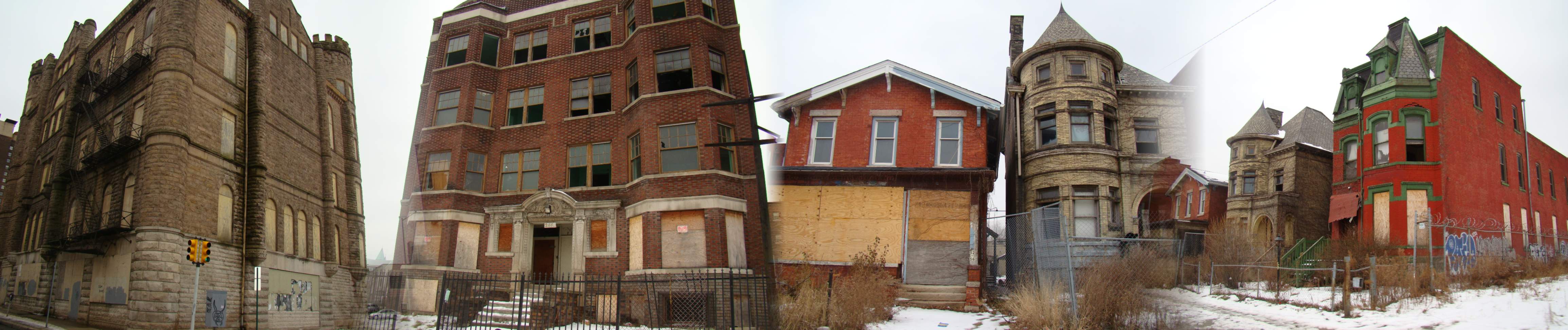 Construções que já foram o símbolo do vigor da industria automobilística americana e hoje estão abandonadas. A decadência começou em 1970, graças a crescente concorrência de empresas japonesas produtoras de automóveis.