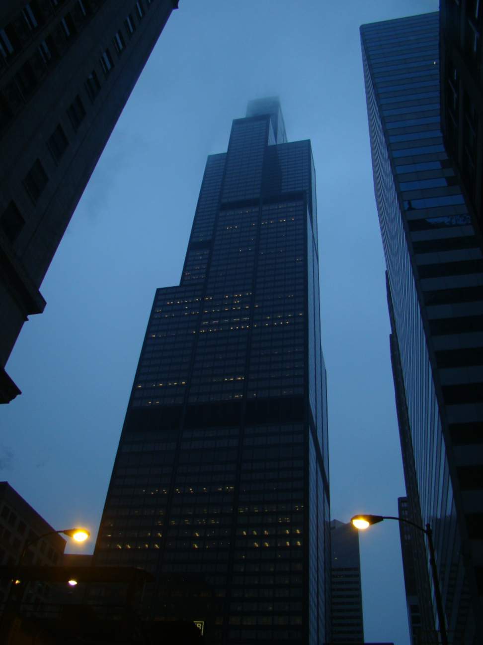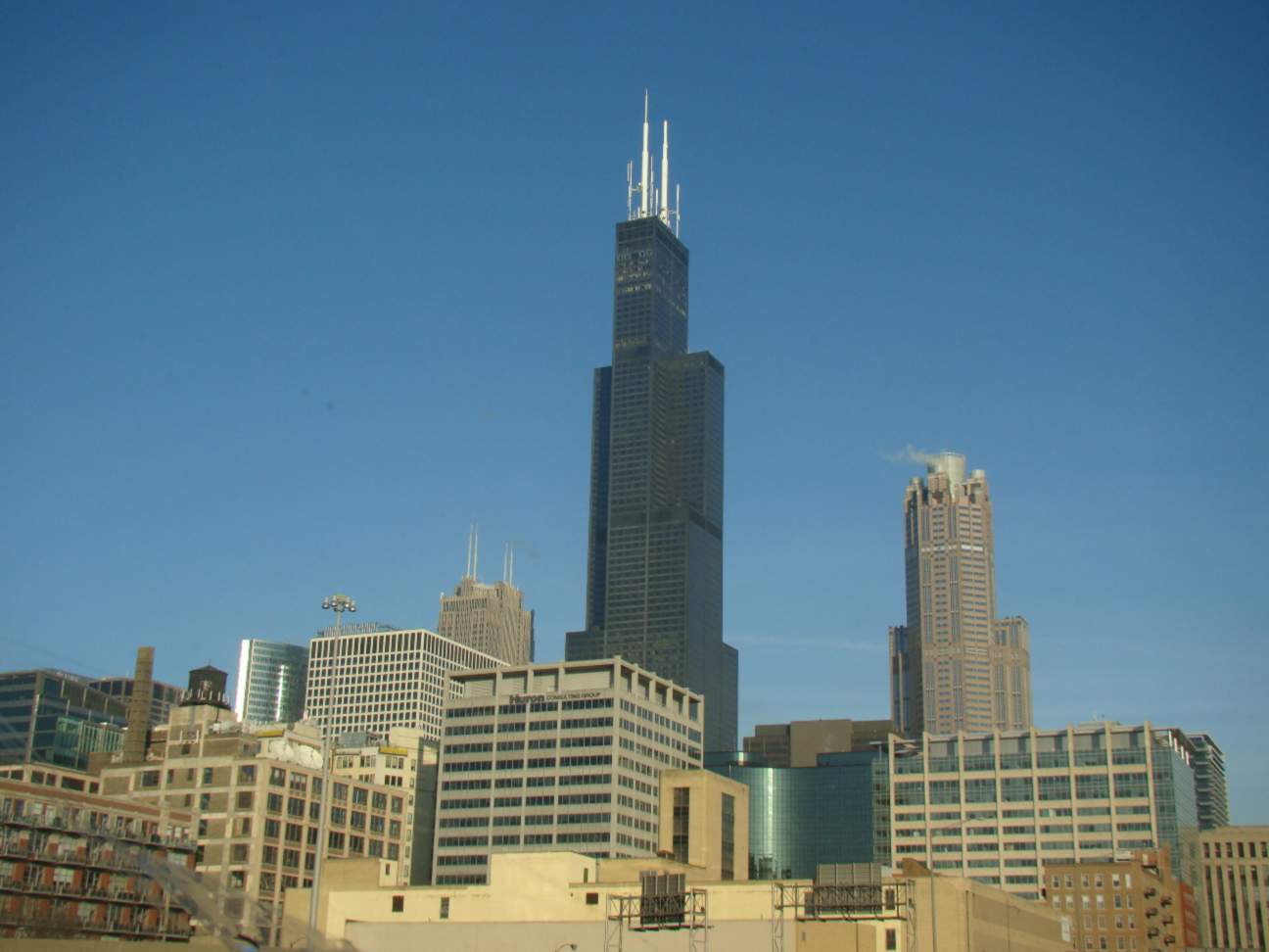 Em Chicago está o prédio mais alto dos EUA: o “Willis Tower”, mas ele ainda é conhecido pelo seu antigo nome: “Sears Tower”. Este arranha-céu é tão alto que o último andar fica nas nuvens.