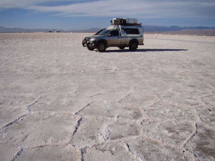 Alguns quilômetros depois chegamos ao deserto de sal de Salinas Grandes.
