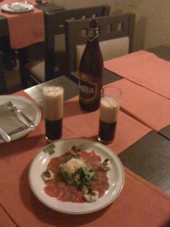 Fomos a um restaurante que tinha internet. Mas como aqui é por satélite o negocio é lento demais. Mais lento que internet por telefone em 1995. Desistimos da web e comemos um carpaccio de lhama delicioso com uma cerveja local negra.