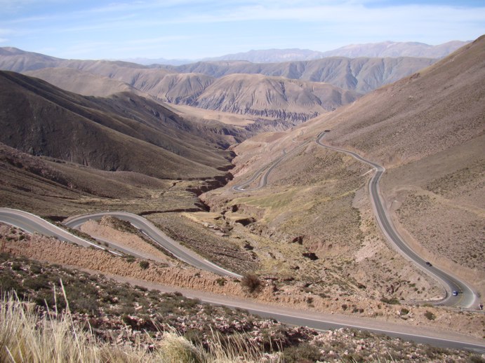 Subimos os Andes em curvas fechadas e muito íngremes.