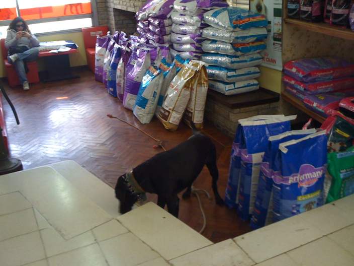 A Ana ficou no carro com o Tapa e lá fui eu. Terceiro andar. Chego à seção dos cachorros e gatos. Lá dentro da salinha estava um senhor que ignorava a minha presença. Depois de fritar uns 30 minutos ele me atendeu.