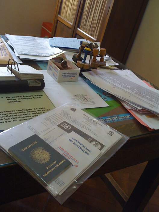 Chegamos na Aduana. O Tapa já morou naquela aduana por 3 dias quando foi embarrerado de entrar no país por ausência de alguns documentos. Lembro do cara avisando: “Se não buscar ele em 4 dias, vamos sacarificá-lo.” Grande mentira, na hora de ir embora eles imploraram para deixar o fedorento de presente para eles.