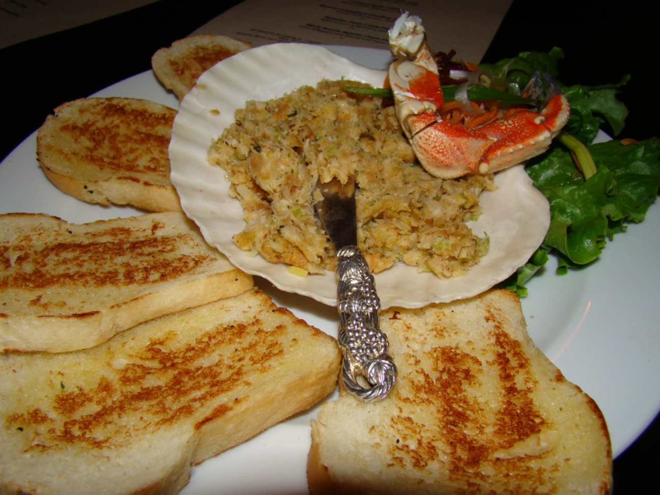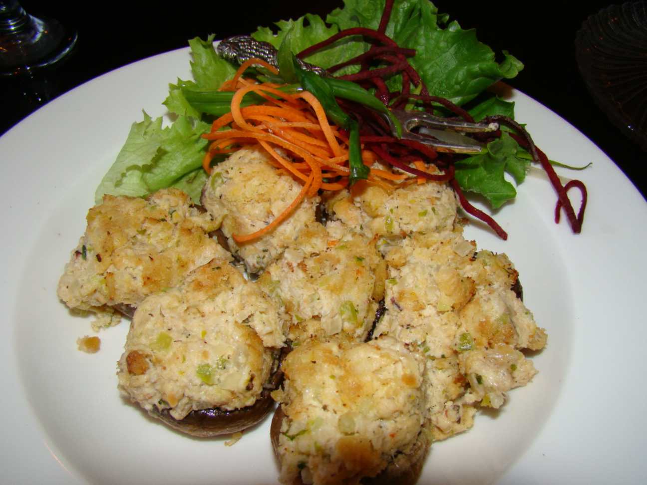 Estava tão gostoso que acabamos pedindo mais uma entradinha. Desta vez foi “Crab Artichoke au Gratin with Toast Point”, caranguejo gratinado com alcachofra e torradas. Estava espetacular, assim como os cogumelos.