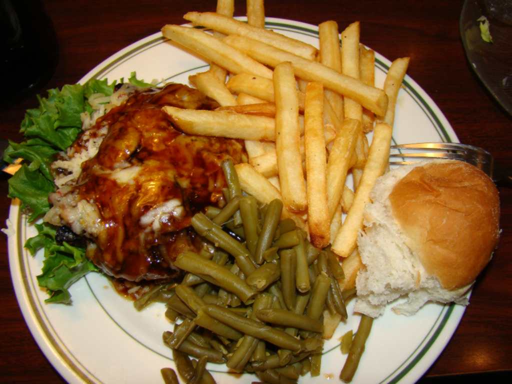 Neste dia aproveitamos para comer um pouquinho melhor. Eu pedi um prato de bife ao molho de cogumelos com batata frita e salada....