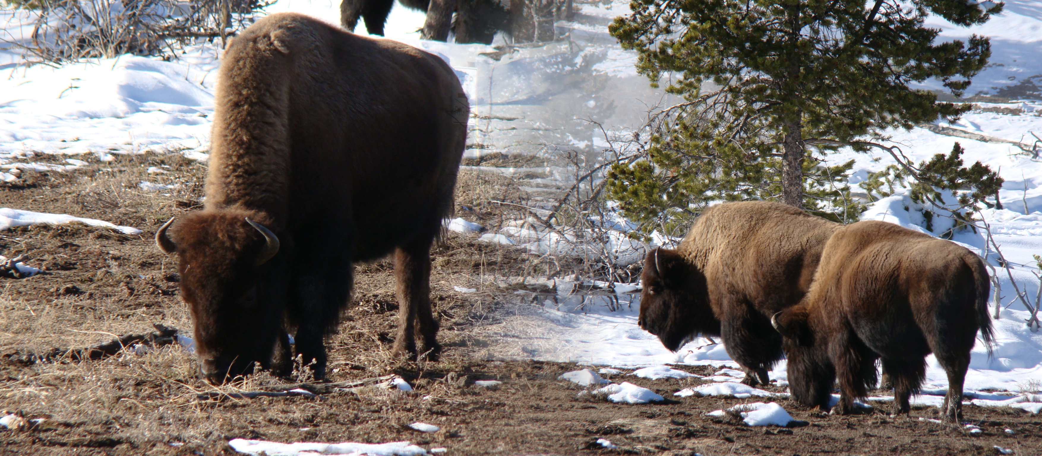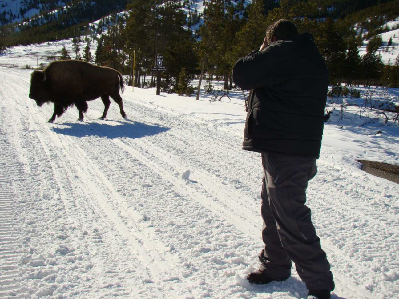 Cruzamos também com os búfalos. Eles são os animais mais perigosos do Yellowstone. Mais que os ursos e lobos. Eles, todos os anos, atacam diversas pessoas e algumas morrem.