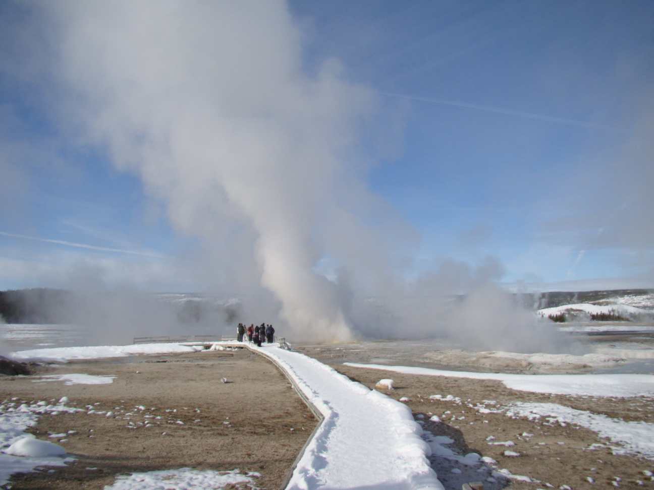 Sobre passarelas nevadas pode-se passear no meio de diversos gêysers.