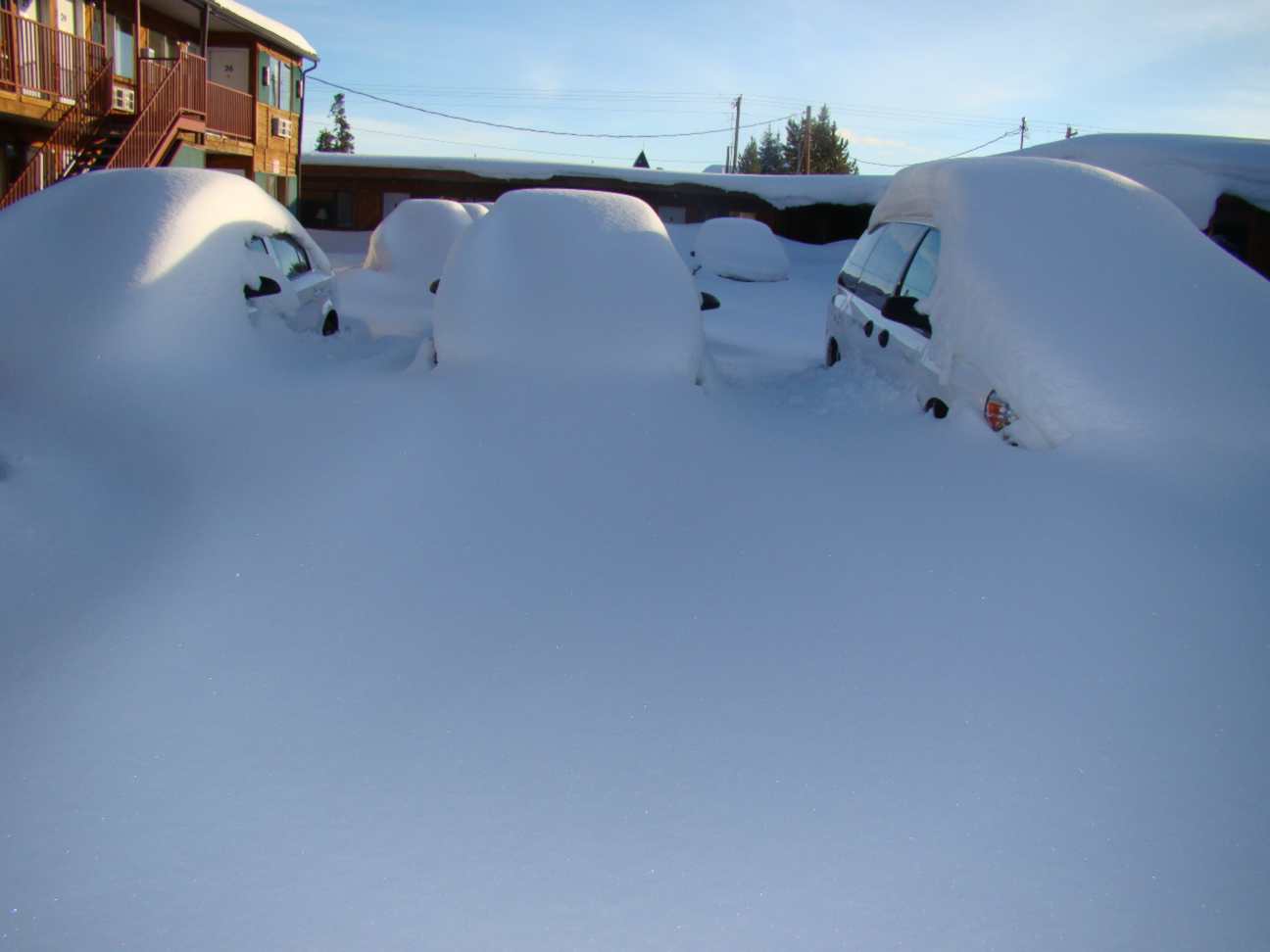 Dezenas de carros com neve até o teto! Ali, definitivamente, faz frio.