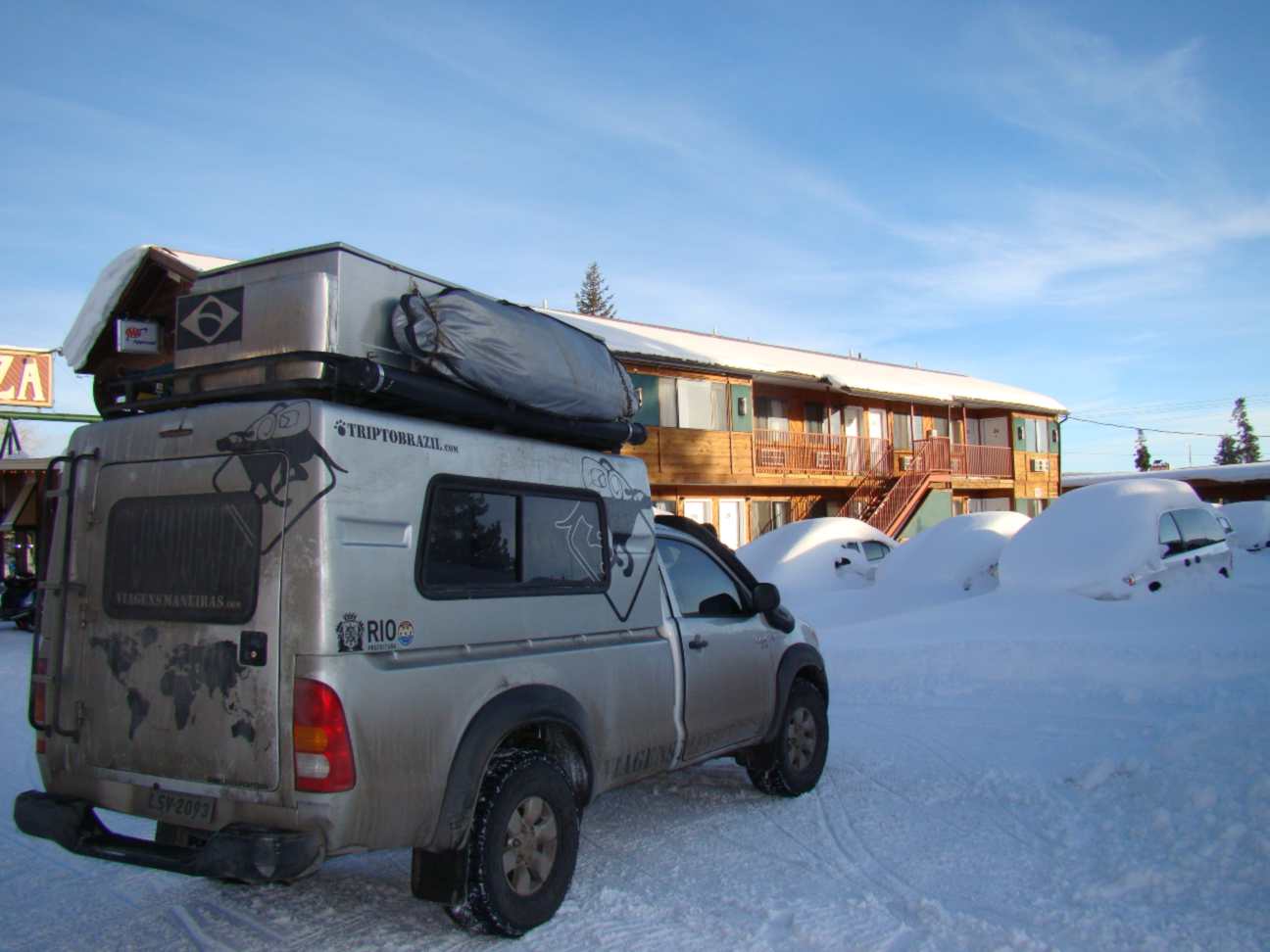 que passar a noite ali por causa de outra forte nevasca. No motel onde