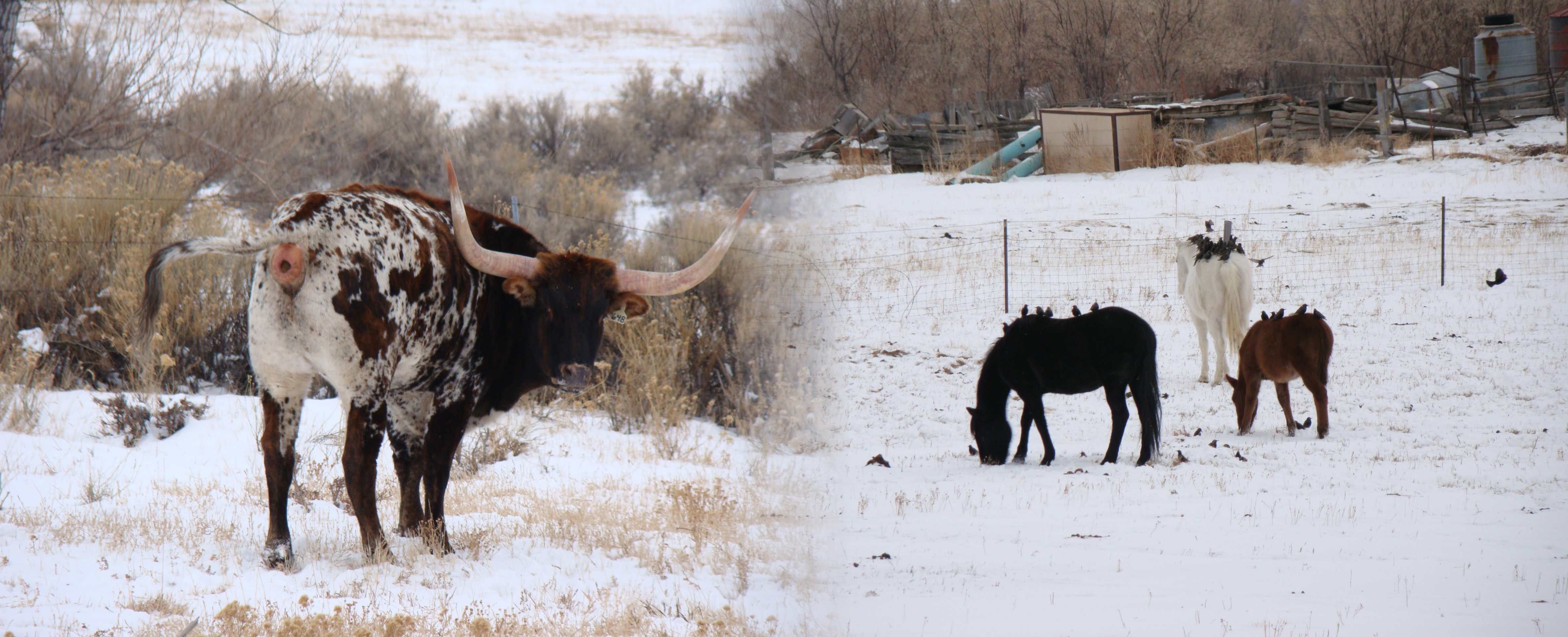 No caminho vimos cavalos peludos e bois com chifres enormes. Pareciam o capeta.