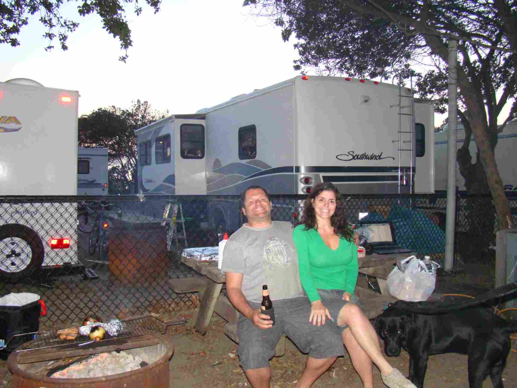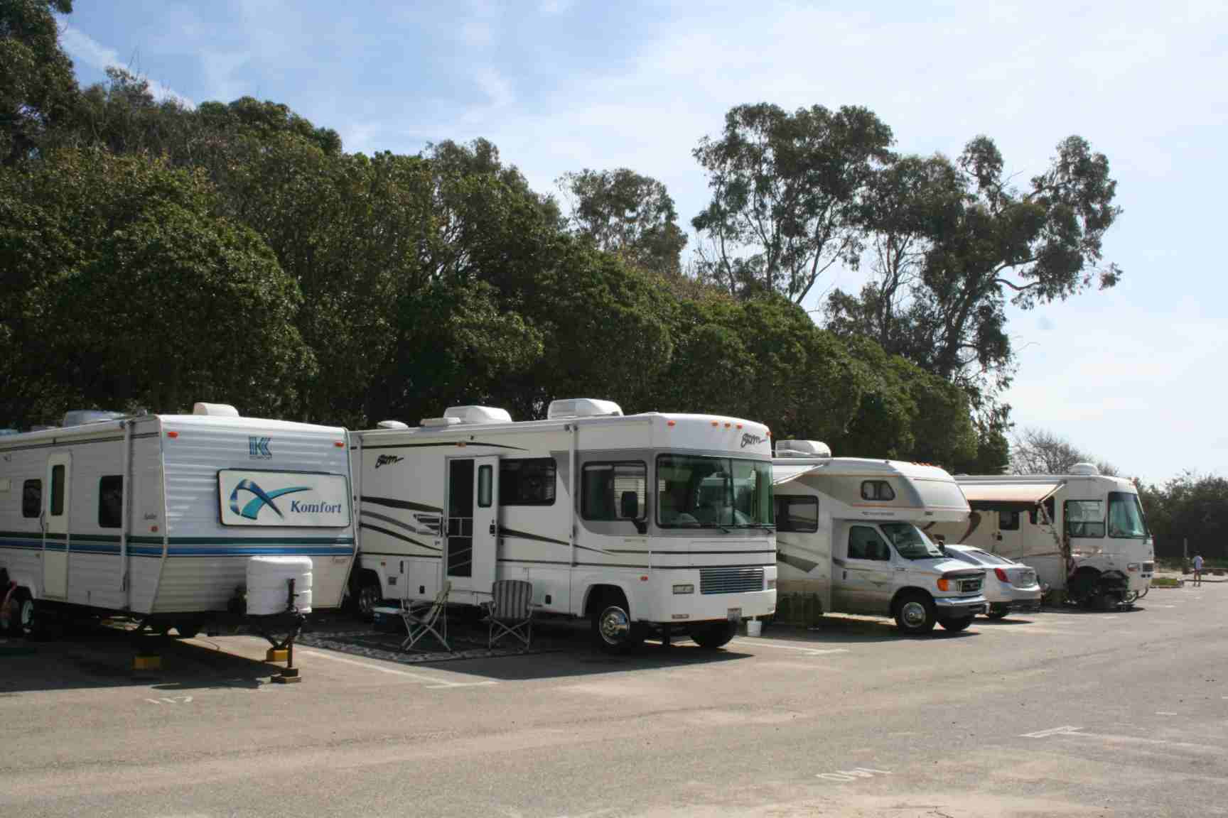 Nos mandamos para um camping chamado Carpinteria que fica perto de Santa Barbara, ao norte de LA. Ali os motohomes ficam grudados um ao lado do outro.