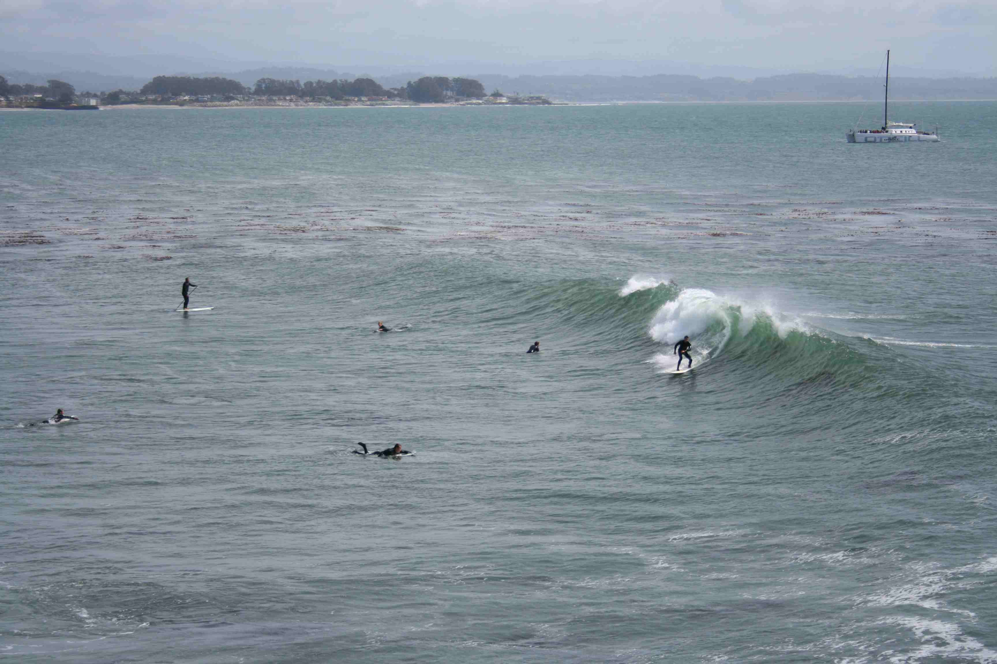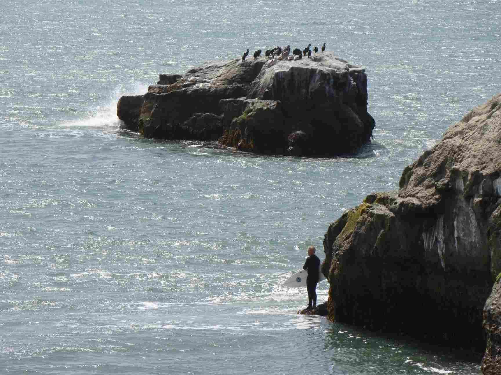 Em Steamer Lane tem um museu do surfe dentro de um farol. Lá existem algumas pranchas mastigadas por tubarões brancos. Na água, eles não estão muito longe das ondas.