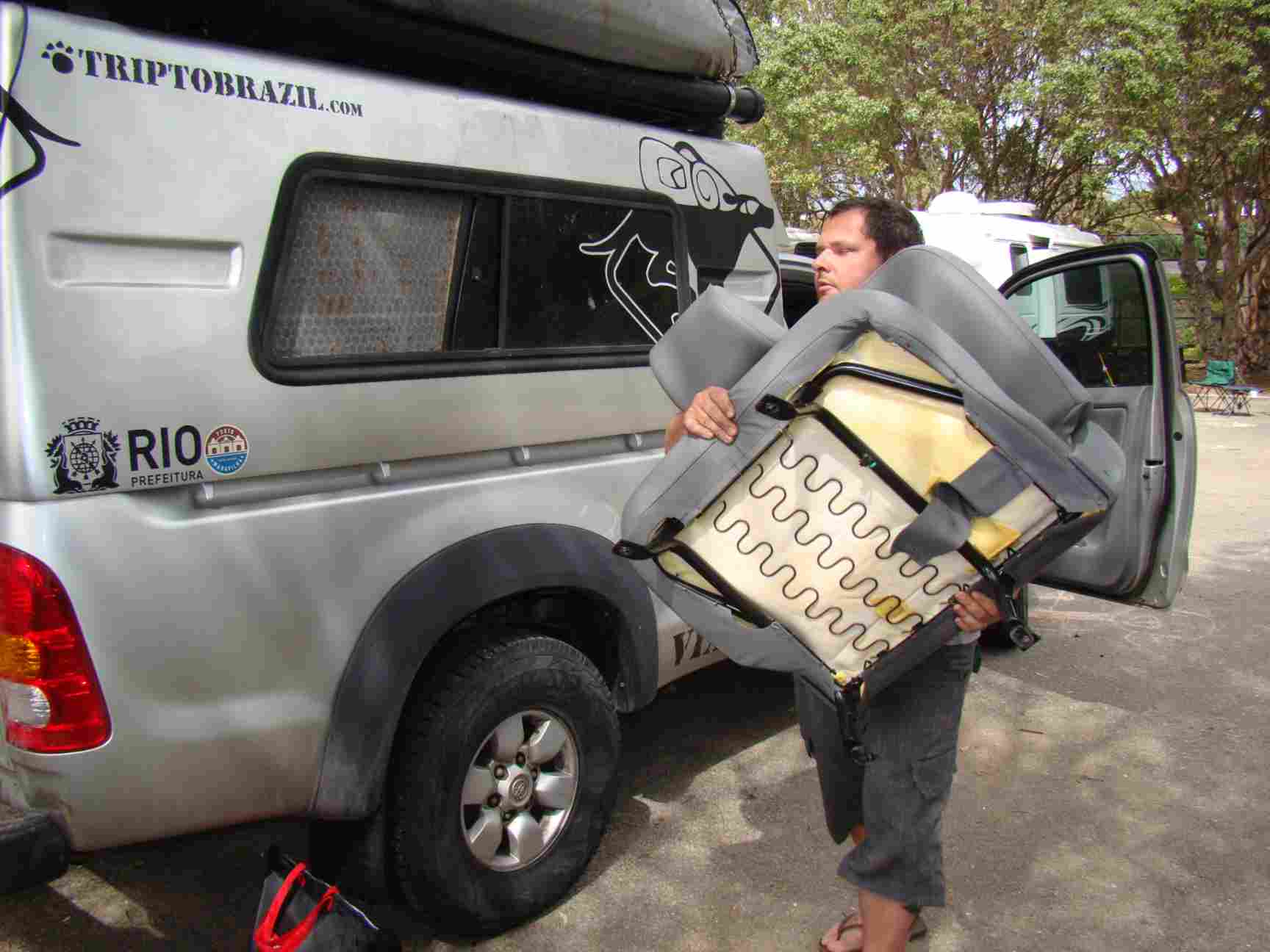 No camping é proibido fazer a manutenção do carro, mas se não fizesse ali, faria onde? No estacionamento do Wall Mart?