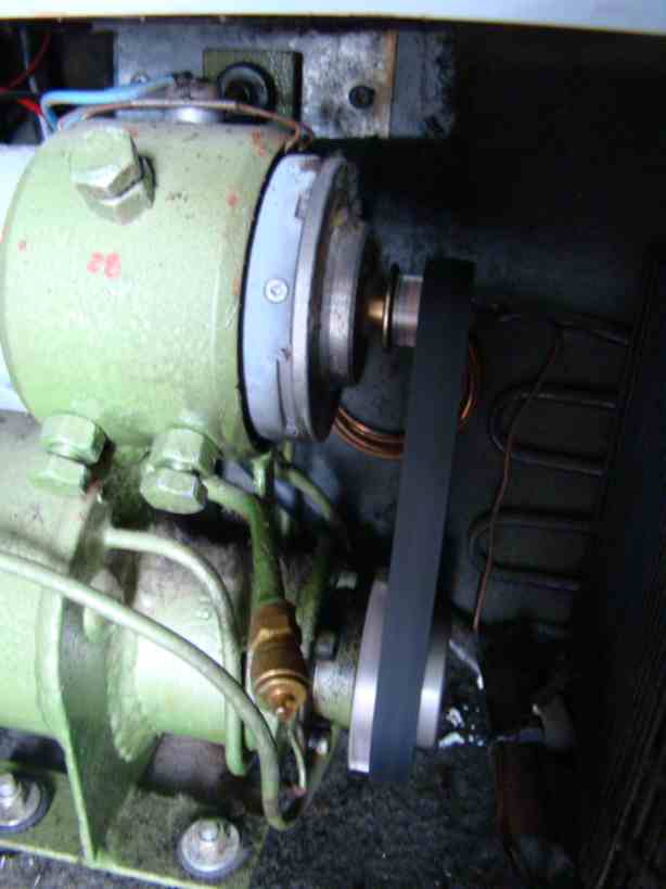 A correia da geladeira arrebentou, pois o motor ficou forçando uma engrenagem congelada. Claro que não existe esta correia nos EUA. Consegui substituir por duas correias de aspirador de pó, uma sobre a outra. Funcionou perfeitamente! Nota 10 para gambiarra.