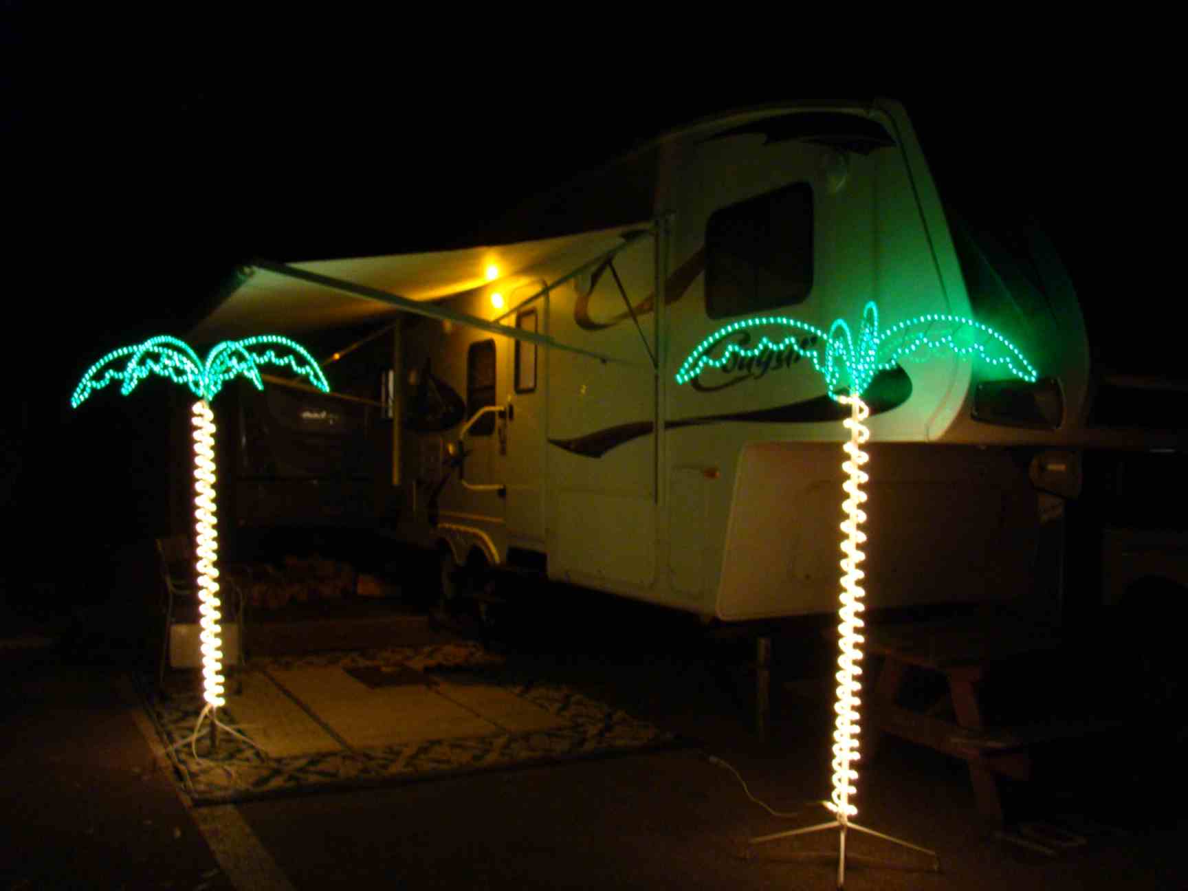 E sempre existe alguém com apetrechos inacreditáveis, como coqueiros de neon, para enfeitar o acampamento.