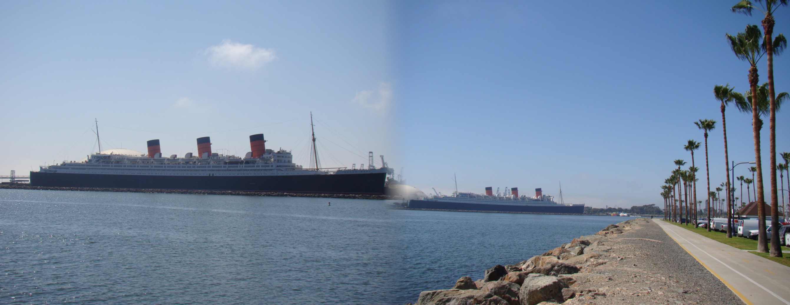 Em Long Beach vimos o lendário navio Queen Mary, uma espécie de navio irmão do Titanic. Ele está ancorado ali desde de 1967 e hoje é um hotel flutuante e famoso por ser mal assombrado. Na sala de motor tem o fantasma de um homem que morreu esmagado. Muitos visitantes já viram ali um fantasma de macacão azul andando perto da porta, fantasmas de mulheres com maiôs da moda antiga foram vistos várias vezes na piscina. Trilhas de pegadas molhadas também foram vistas, apesar da piscina estar vazia. Uma mulher de branco já foi vista várias vezes dançando sozinha no salão. Além do fantasma pianista que arrepia os visitantes do navio com suas notas assustadoras.