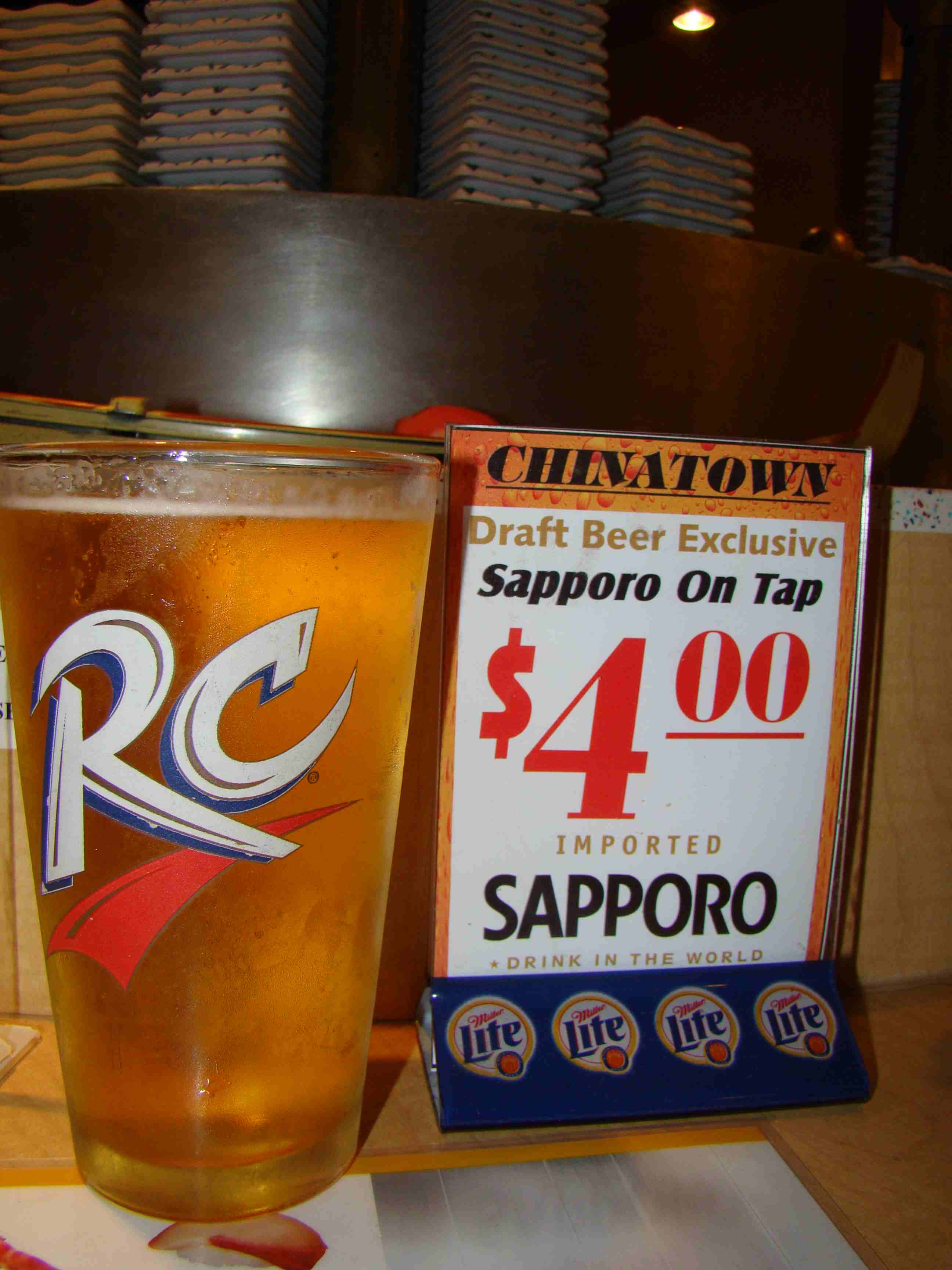 Por indicação de uma pessoa que estava sentada ao nosso lado bebemos a deliciosa cerveja japonesa Sapporo. Excelente cerveja!
