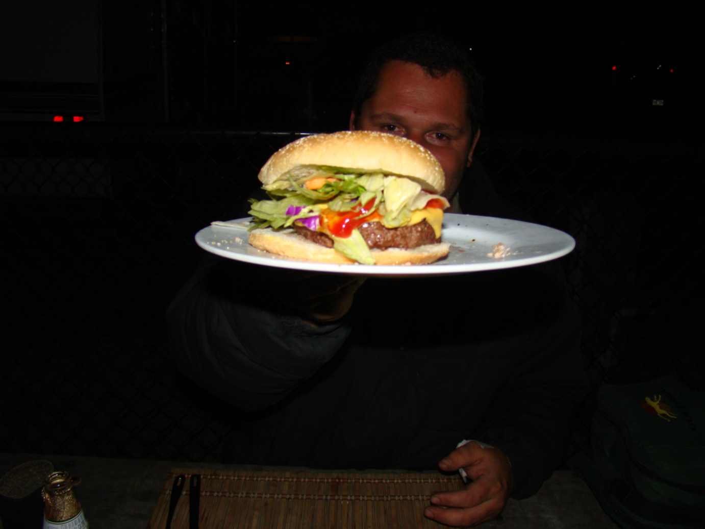 Os americanos sempre olham pros nossos churrascos assustadíssimos e não entendem nada do que vêem ali, cebolas, batatas, coxa de galinha... é até engraçado vê-los passando curiosos para olhar a nossa farofa. Até porque o churrasco deles é na grande maioria das vezes somente de hambúrguer e, dependendo do lugar do país, de costela de porco, como já falei aqui algumas vezes. E também não varam a madrugada como os nossos... hehehe. Das 22hs às 8hs rolam as chamadas "quiet hours" em todos os campings do estado e é extremamente proibido fazer barulho e incomodar o próximo. E aqui todos respeitam o espaço alheio, e nós não poderíamos ficar de fora e sujar a imagem do Brasil por aqui. Então, depois das 22hs passamos a nos comunicar praticamente por mímicas. O grande problema é que exatamente nessa hora, quando todos os campistas recolhiam-se em seus trailers, apareciam guaxinins atrás das sobras de comida, e é claro que o Tapa fazia escândalos absurdos por causa dos bichos. Tratávamos de colocá-lo para dentro do carro e voltávamos a curtir a nossa paz e a nossa deliciosa farofa, mudos! Além do churrasco de salmão com batatas feito num dia, fizemos também o tradicional hamburguer...