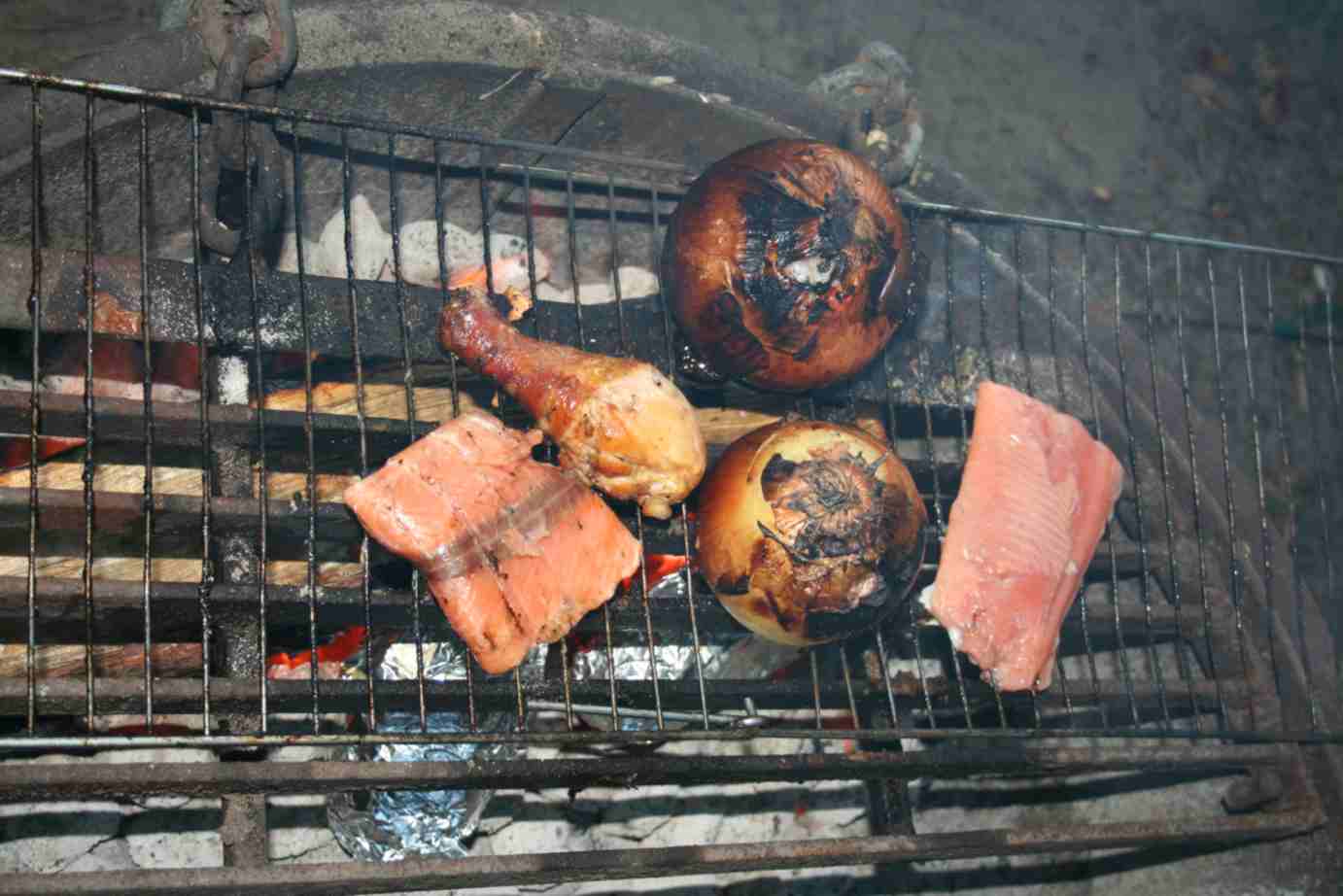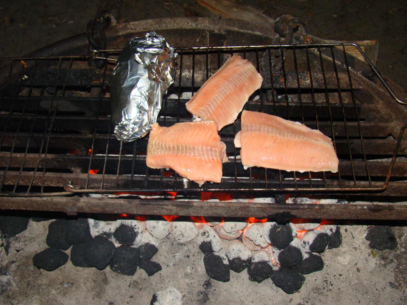 Saindo um pouco do churrasco de hambúrguer, nos demos o luxo de comer churrasco de salmão, pois estava numa promoçãozinha básica no supermercado. Salmão com batatas... delicioso demais!