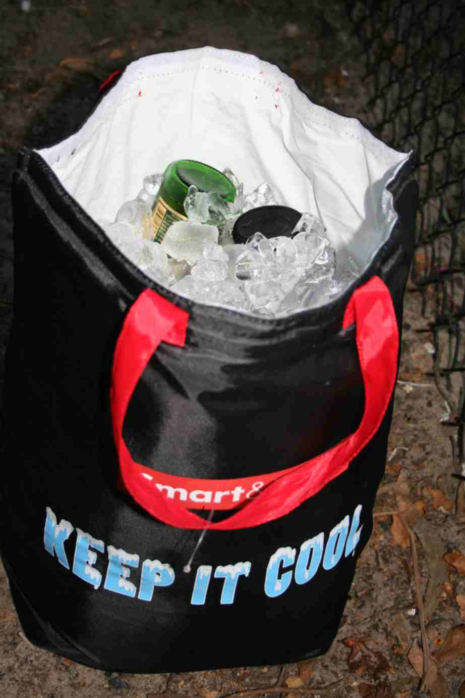 Como tivemos problemas com a nossa estimada geladeira, tivemos que providenciar um “cooler” para gelar as nossas cervas enquanto a consertávamos. Compramos essa sacola térmica e colocamos as cervejas ali dentro... ficaram todas geladíssimas e deliciosas! E para nosso alivio, graças às engenhocas do Gu, conseguimos consertá-la!