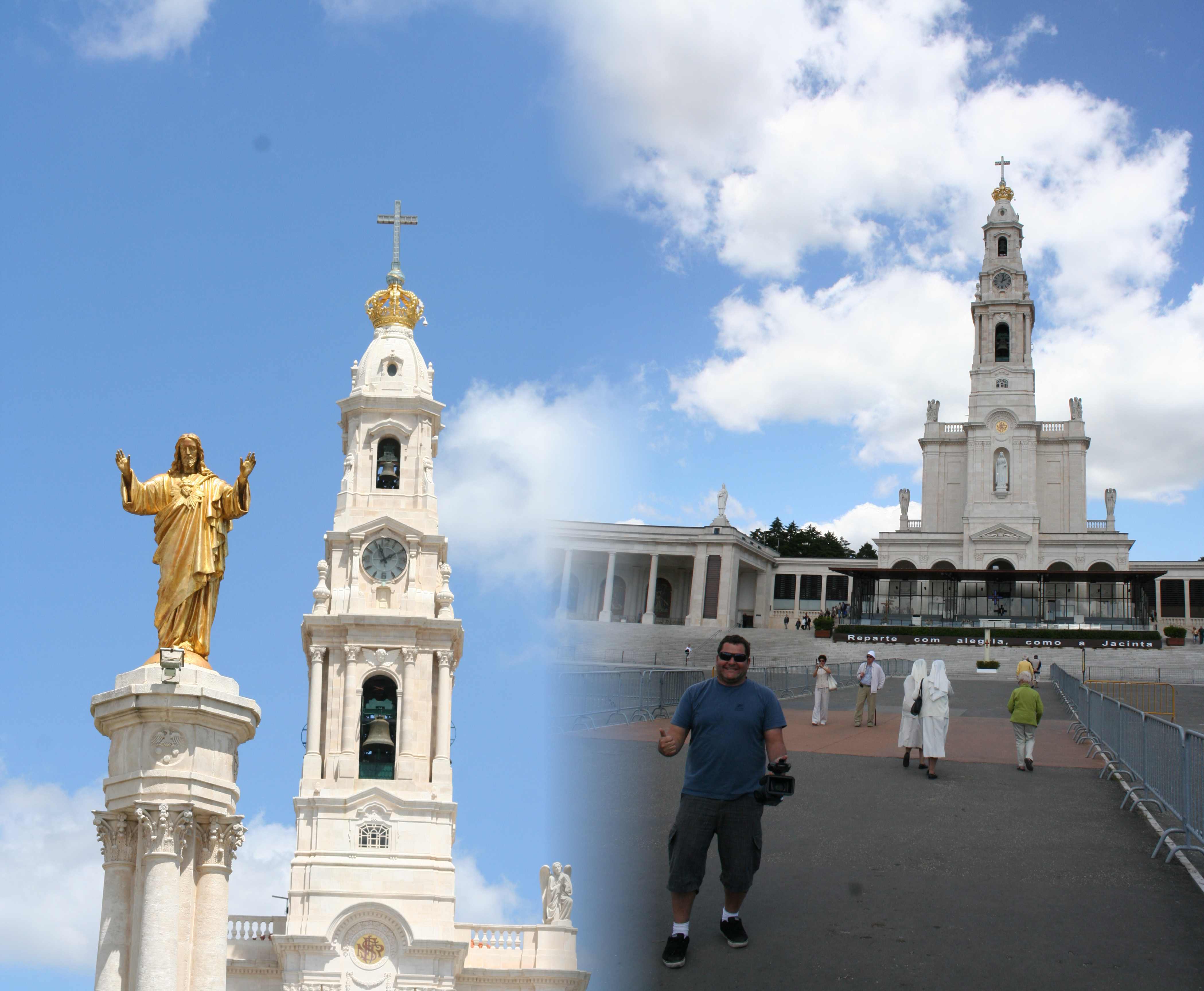 Demos uma passada em Fátima, lugar onde 3 crianças, Lucia, Jacinta e Franscisco, em 1917, tiveram a visão da Virgem Maria que lhe revelou 3 importantíssimos segredos. O primeiro foi a 1ª Guerra Mundial, o segundo foi a 2ª Guerra Mundial e o Terceiro Segredo nunca foi revelado. Cinco dias depois o Papa foi ali rezar e foi um grande acontecimento aqui em Portugal.